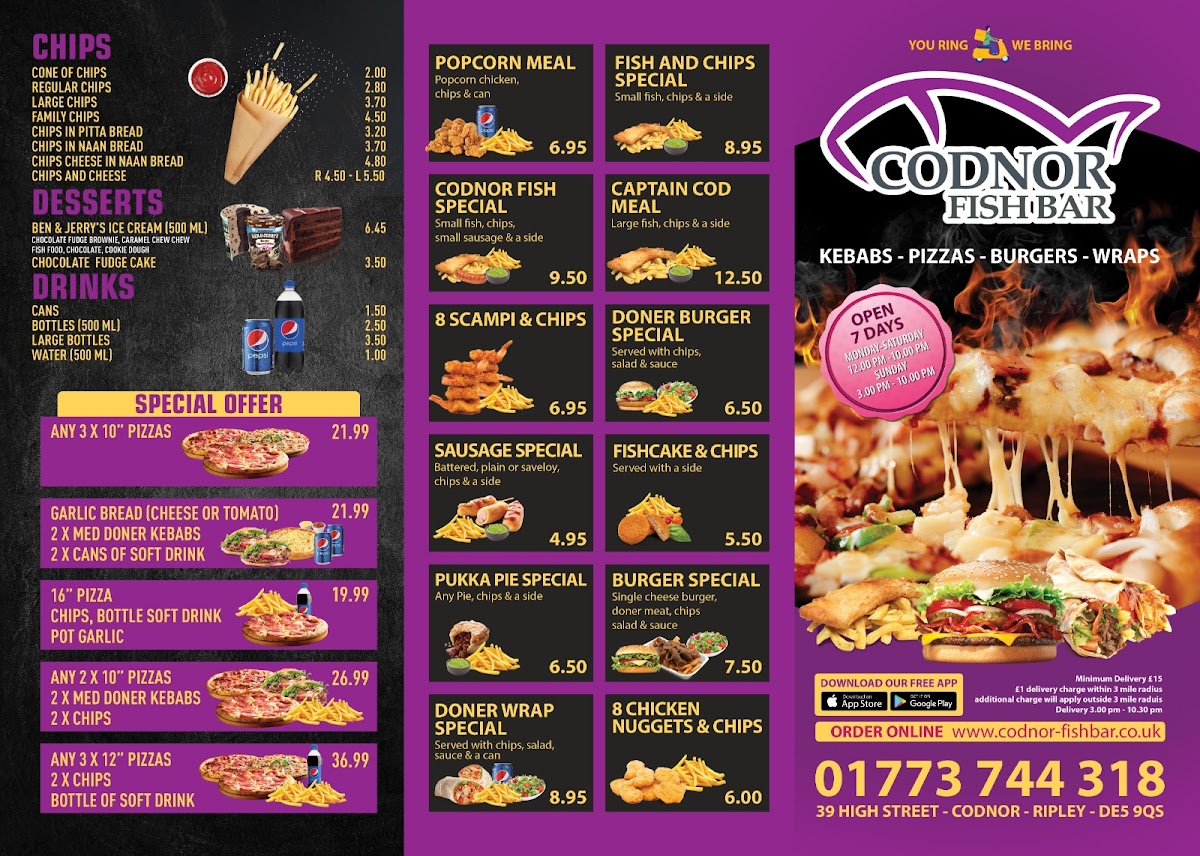 Welcome to Codnor Fish Bar, your premier destination for traditional British takeout in Ripley! Located at 39 High St, this charming chip shop has garnered a reputation for its exceptional quality and friendly service. The menu is a delightful mix of classic options and innovative dishes that cater to all tastes.